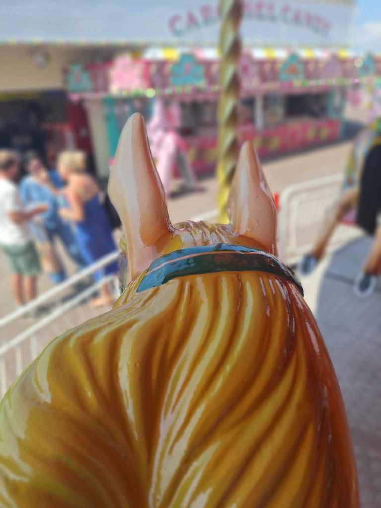 And that is Pleasure Beach’s real selling point. It is on the beach. When a ride reaches its apex, you can look over the fence and see the North Sea in all its summer greenery. It’s so close to the water that you’d think a high tide might give the rollercoaster a chance to double-up as a log flume. Then, in the other direction, is the hazy aspect of Yarmouth itself, a towering edifice of Georgian naval splendour reduced to a children’s paradise of 2p machines, hot doughnuts, and donkey rides.